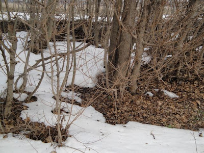 | あるかな〜? まだ雪解け中の薮のなか。 C’est par ici que j’en avais vu plein l’an dernier… Elles sont là??? … pas encore??? |
