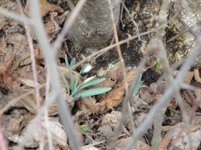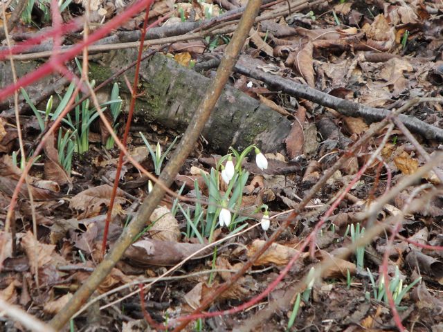 ありましたよー!!! かわいいスノードロップの花が 遠慮がちにちょこちょこ顔出しているではないか!!!