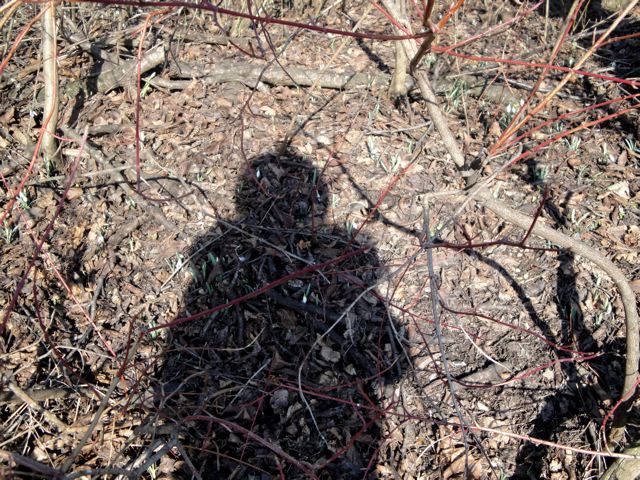 | ホラ、こんなに全体を見渡すと、どこに生えてるか見えにくいでしょ?だから目を皿にして 「あるかな?あるかな?」と見てるわけです。ちょこちょこ生えてる・・ Vue de l’ensemble du coin aux perce-neige… mmm vous voyez ces petits machins qui poussent par ci par là??? |