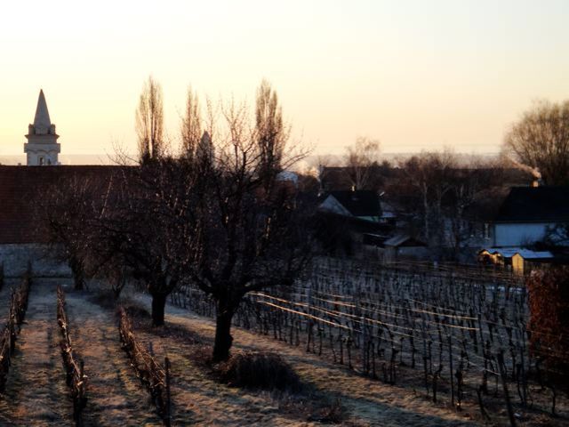 火曜日の朝はこんなすてきな光に照らされて、いつも同じ景色だけど、ほんとに春が近づいてきたような雰囲気。それでもほら、煙突からはあいかわらず煙が出てるでしょう、ほうぼうのお家ではまだ暖炉で薪を燃してるのですよね・・・暖かそうな陽の光だけど暖房はもちろんまだ必要。「零下じゃなくなった」というだけですもん。