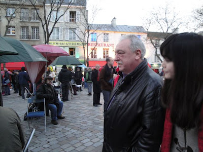 そしてサクレクールの中をおまいりして、いつものように天国のバーニーちゃんの父母と兄さんとおばさんたちのために3つロウソクをあげて、それからテルトル広場で画家さんたちが肖像描いてるところもたっぷり見物して・・・丘を裏から下ってイザベルおばさんの家に行って、シャンペンで乾杯しました。