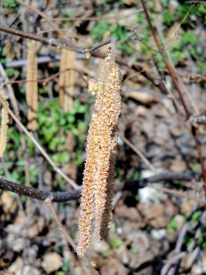 スミレの可愛らしいのに目を奪われていたら、すぐ手前にヘーゼルナッツの「花」?もあったのです。