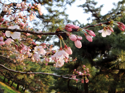 C’est quand même là que je préfère venir voir les fleurs de cerisiers à Tokyo, en face de l’université le long du chemin qui borde le terrain de sport, mais qui était autrefois une partie des douves extérieures du château de Edo, Sanada-Bori.