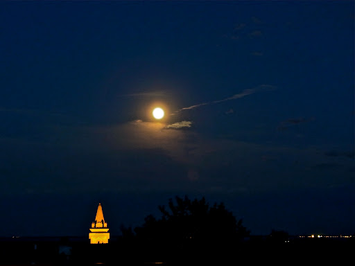 Quel bonheur de regarder le ciel clair, avec le fond très bleu, illuminé de cette énorme lune et quelques étoiles, tout en discutant au calme – et on entendait des grenouilles chanter quelque part dans les champs.