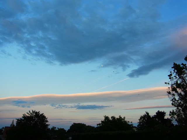 Le soir juste avant le coucher du soleil… c’est le moment magique, le ciel et les nuages changent de couleur toutes les minutes. Tous les jours c’est un autre spectacle! Les oiseaux sont super actifs, il y a des hirondelles qui font leurs numéros acrobatiques en l’air juste au dessus de notre maison, les merles qui chantent très fort, les autres qui circulent de partout … Ce soir dans le ciel, on a vu ce gros nuage qui ressemblait à celui de Laputa (du Château dans le ciel de Miyazaki Hayao). Pazu et Sheeta sont quelque part dans ce gros bout?