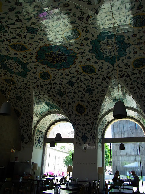 タイルは ウイーンに住んでるトルコ人のアーテイストがデザインして、イスタンブールで焼いたものなんですって。どうりで 中近東っぽい味で なんだか旅行に来たみたいな雰囲気でしたよん。