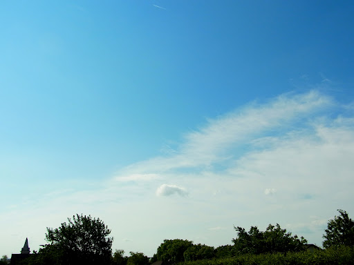 今朝はさわやかな青空。かわいらしい白い雲がぽっかり浮かんでいましたよ。