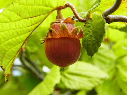 それから、庭に植えた ちっちゃなヘーゼルナッツの木に、ふたつだけ 実がなっているのを発見。