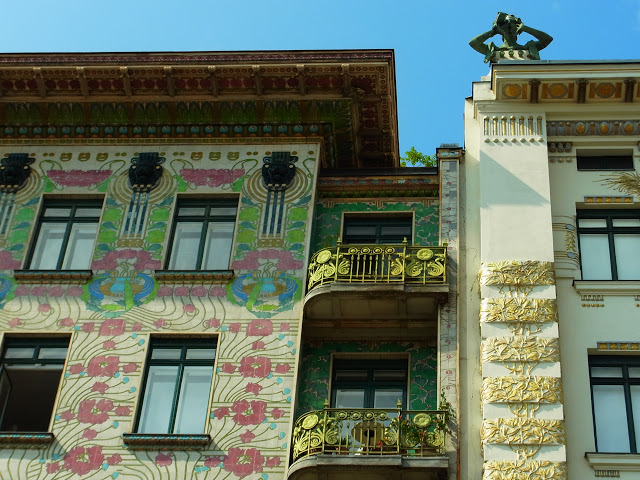 | Le long de Naschmarkt… les fameux deux bâtiments ‘Majolikahaus’ et Medaillonhaus. ナッシュマルクトに沿った道に面してある、オットー・ワーグナーの「集合住宅」建築 「マジョリカハウス」と「メダイヨンハウス」 |