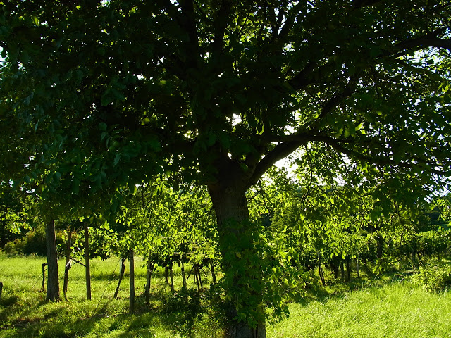 | Il était presque 18h. Le soleil était encore très fort et je me suis un peu arrêtée de temps à autres à l’ombre. 夕方6時ごろ まだ陽射しが強くて、胡桃の木の木陰が心地よく感じます。 |