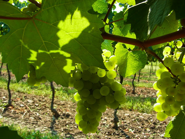 「どうやって、持って帰ろうかなあ?」と考えて、葡萄の葉っぱを1枚だけいただいて、お皿みたいに載せて 大切に持って帰りました。