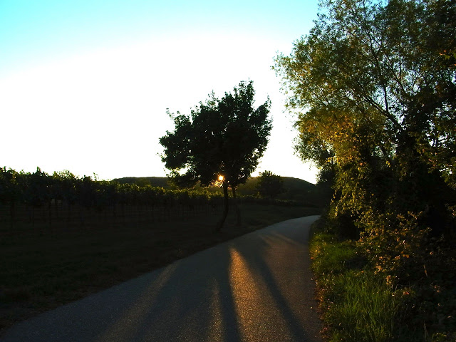 Vendredi soir, je suis allée voir ‘mes’ mûres s’il y en a encore qui ‘m’attendaient’à être cueillis… oui il y en a encore un peu, il faut que je revienne avec des sacoches!! Il était déjà assez tard, juste avant le coucher du soleil, pratiquement personne sur le chemin. J’aime bien ce petit moment calme.