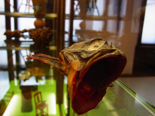 | Et il y avait une drôle de salle spéciale avec ces objets mystérieux… こんな怖いものが展示された特別の部屋・・・ |