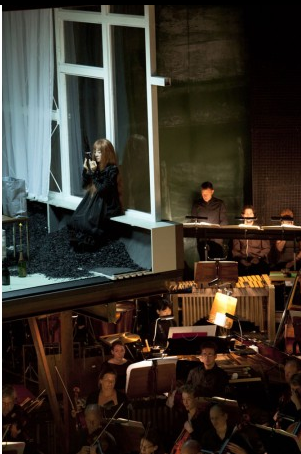 Cette fois-ci, je suis allée à l’Opéra Deutsche Oper Berlin pour écouter (et expérimenter) ‘Das Mädchen mit den schwefelhölzern (la petite fille aux allumettes)’ de Hermut Lachenmann. Une des amies du groupe ‘makenaizone’, Mayumi Miyata, jouait dans cette pièce l’instrument japonais Shô (l’orgue à bouche), dans le rôle de l’ange qui invite la petite fille à la mort, vêtue en noir à la fin de la pièce.