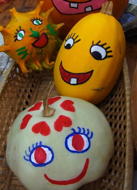 Je suis partie alors directement à Illmitz chez Helmut et Elisabeth pour acheter des légumes bio. Juste une petite sortie, il fait frais, c’est agréable… j’ai pris plein de légumes, dégusté ‘Apfelstrudel maison’ de la maman de Elisabeth, rencontré leurs amis australiens en visite (qui ont eux aussi adopté des éléphants Makenaizô…), dit bonjour aux parents de Helmut qui se sont amenés … mais surtout j’ai passé du temps à dessiner les potirons!!!  Vous pouvez deviner lesquels sont mes chefs d’oeuvre???