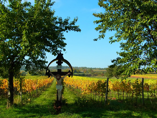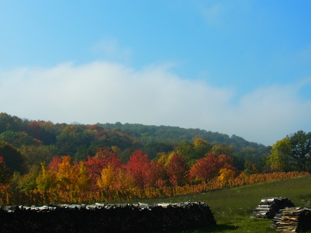 BB村へ帰ってきたら、葡萄の畑が数日のあいだにもうすっかり色づいて、秋の景色。