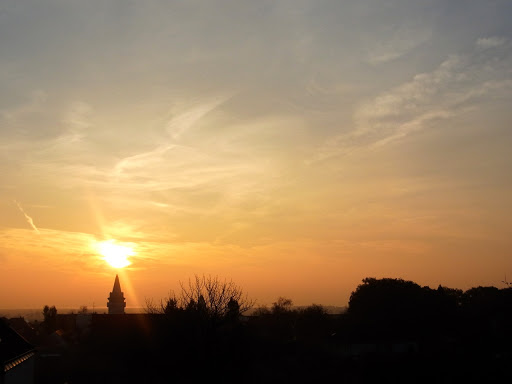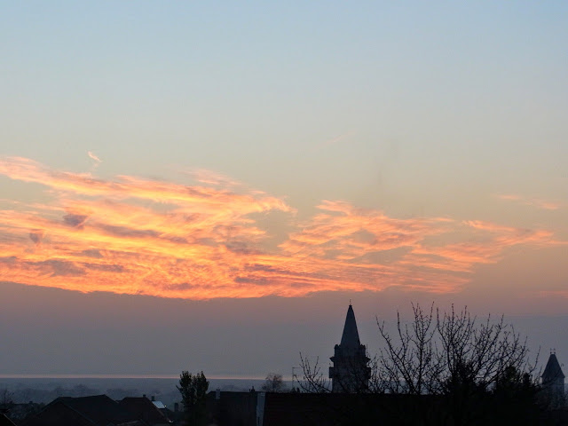 11月21日(木) とてもきれいな朝焼けでした。このところ灰色のどんより曇り空がずっと続いていたので、一日のはじめに美しい色彩たっぷりの「スペクタクル」が、とてもうれしかったです。青い空に美しい色・・・ そして部屋いっぱいに差し込んできた陽の光。