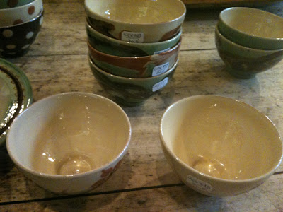 Annieの家の帰り、野菜や魚やチーズを売っているムフタール街のはじっこを横切り、地下鉄の駅のお皿の店にひっかかってしまいました。フランスの昔ながらの工芸品だそうです。かわいい! 控えめに、控えめに。2枚だけ小さなお皿を同じ茶色の地色でそろえて買いました。