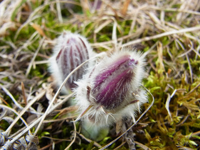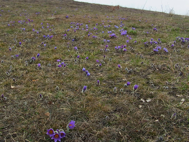 Aujourd’hui mardi (le 12 mars) , nous nous sommes promenées un peu partout dans le village, on a fait le trajet maximum et la grande découverte était ces fleurs d’anémone pulsatille – Pulsatilla vulgaris…
