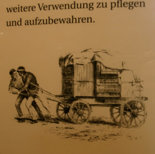 なんとハプスブルグ家の所有する各地の城や宮殿は、ウイーンの中心にあるホフブルグ宮殿を除いては、普段は空っぽだったのだそうな。冬はこちら、夏は避暑であちら、狩りの季節には・・・と宮廷が移動するのに合わせて、所蔵の家具やらタピスリーやら絨毯やら、皿やナイフフォーク一式やらの道具類 ぜんぶ持って「お引っ越し」(ひええ〜 想像するだに大変そう・・・)。痛んだ家具は修理して、使わないぶんは保存して、管理していたというわけで、膨大なその所蔵品。宮廷がなくなったあとは、映画の撮影に使われたり、公的機関の使用に供されたりされたとのことでした。
