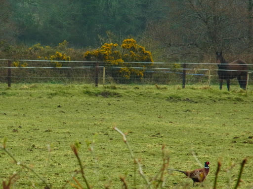 キジさん 実は2羽いたのよ〜!!お馬さんがいっしょうけんめい、見ているのがかわいくて、車のなかからいっしょうけんめい写真を撮りました。