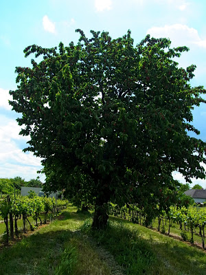 散歩道でもサクランボの木をたくさん見ましたが、まだ緑色のところが多いのに、どうもこの木は一足先に赤くなった組であるようです。同じ村でも木によって、場所によって、早い遅いがあるのですね。日本から帰るころにはサクランボが収穫できて、お菓子やジャムが作れるといいけどな・・・