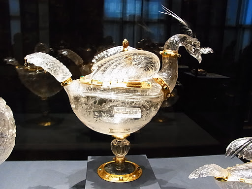 Une gigantesque vase de crystal. 水晶を彫って作られた水差し。これ二つの代価が ミケランジェロの バチカンに描いた天井画よりも高価だったということです。ありゃまー!!