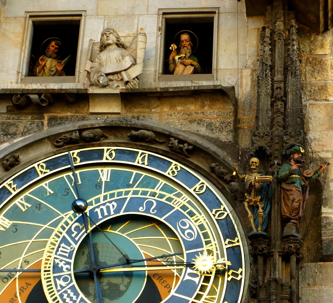 旧市街の大きな広場には時計塔がそびえています。時間がくると、窓が開いて12使徒さんたちが顔を出す。