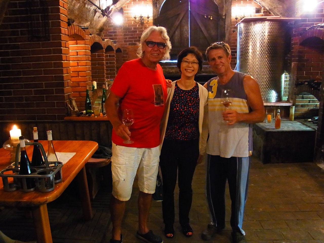 最終日の木曜日の夕方(6月20日) 元オペラ歌手の友だちオッシーじい ちゃんのワイン倉で、じゅんじゅん大歓迎のワイン味見会。