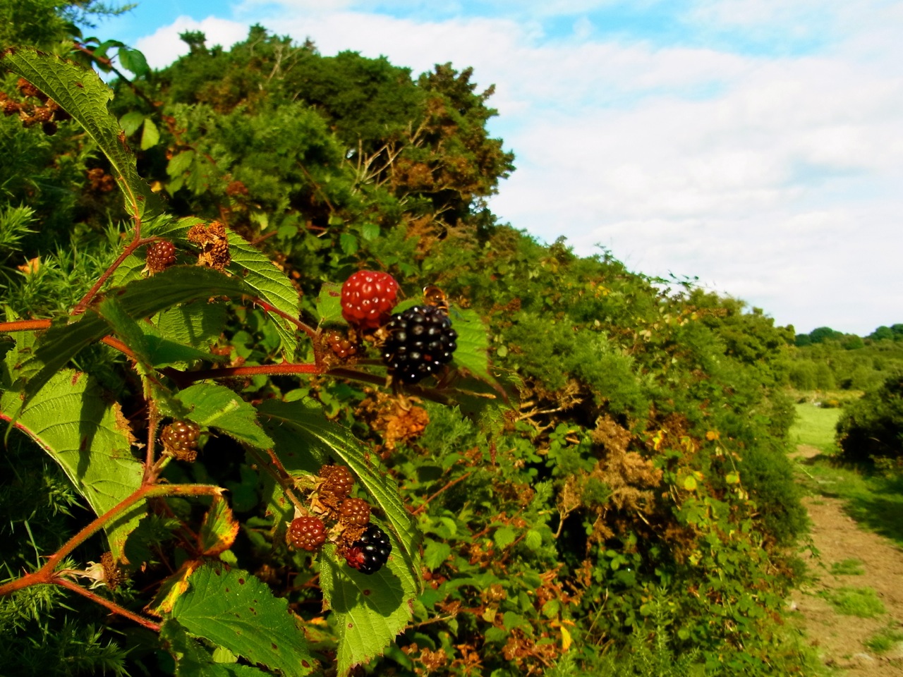 牛さんたちの通り道沿いに、ブラックベリーの薮。静かな午後です。