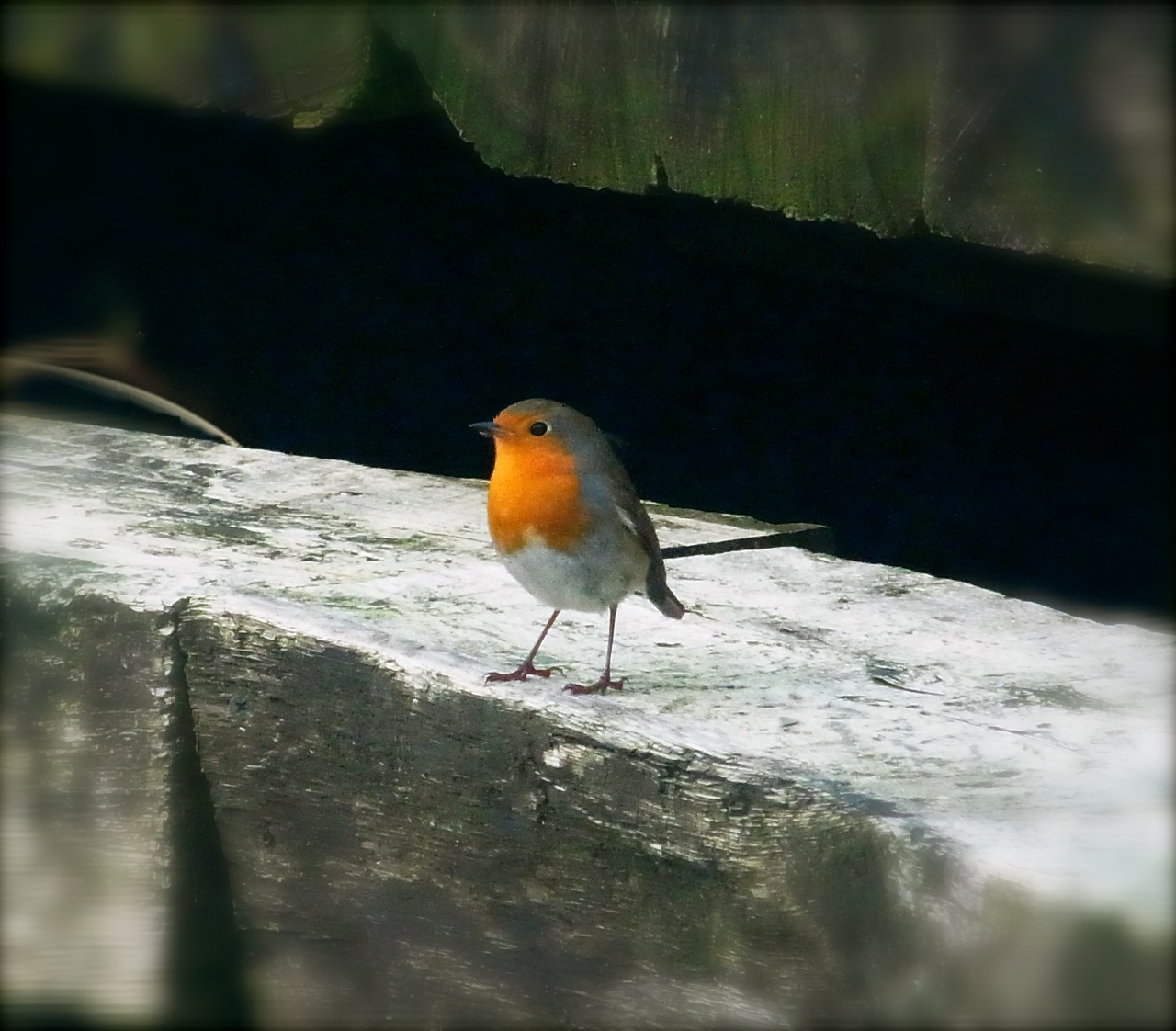 We have now nice water feature functioning in front of our house (just a bit like a stretched pond, but with stream) and some birds are coming there too. I could see and take this nice photo of a robin bird who stayed there long enough.