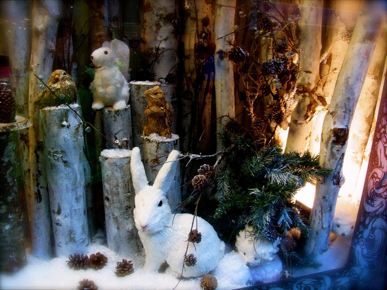 ウインドーの動物さんたち♡ Les petits animaux qui étaient dans la vitrine. Eux ils ne sont pas là à hiverner, mais à faire la fête!!