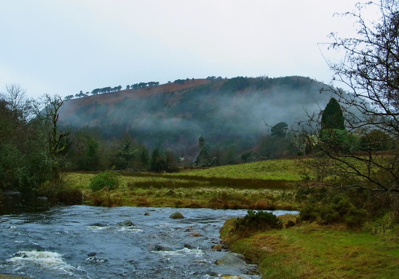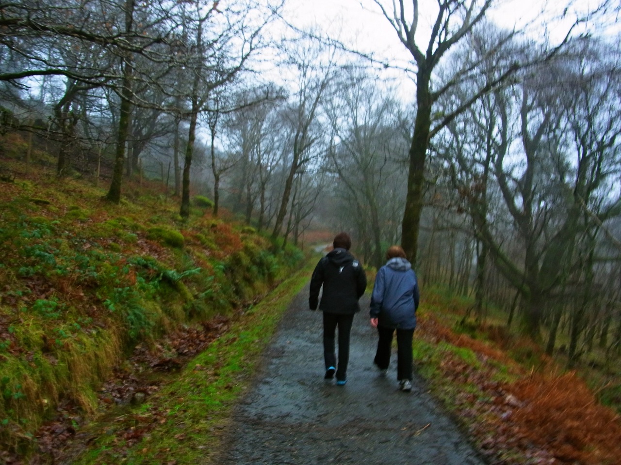 Vendredi le 24 janvier à Glendalough: Avec la vue brumeuse, c’est tout de suite une toute autre ambiance… même si notre papotage est toujours le même!!