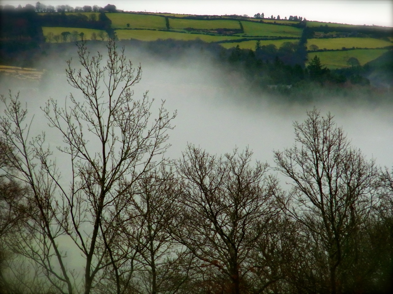 C’est vraiment drôle d’avoir la brume qui flotte par dessus la tête en partant … et de la voir ensuite en bas en arrivant au sommet de la colline de Derrybawn. Une vue féérique… la première expérience.