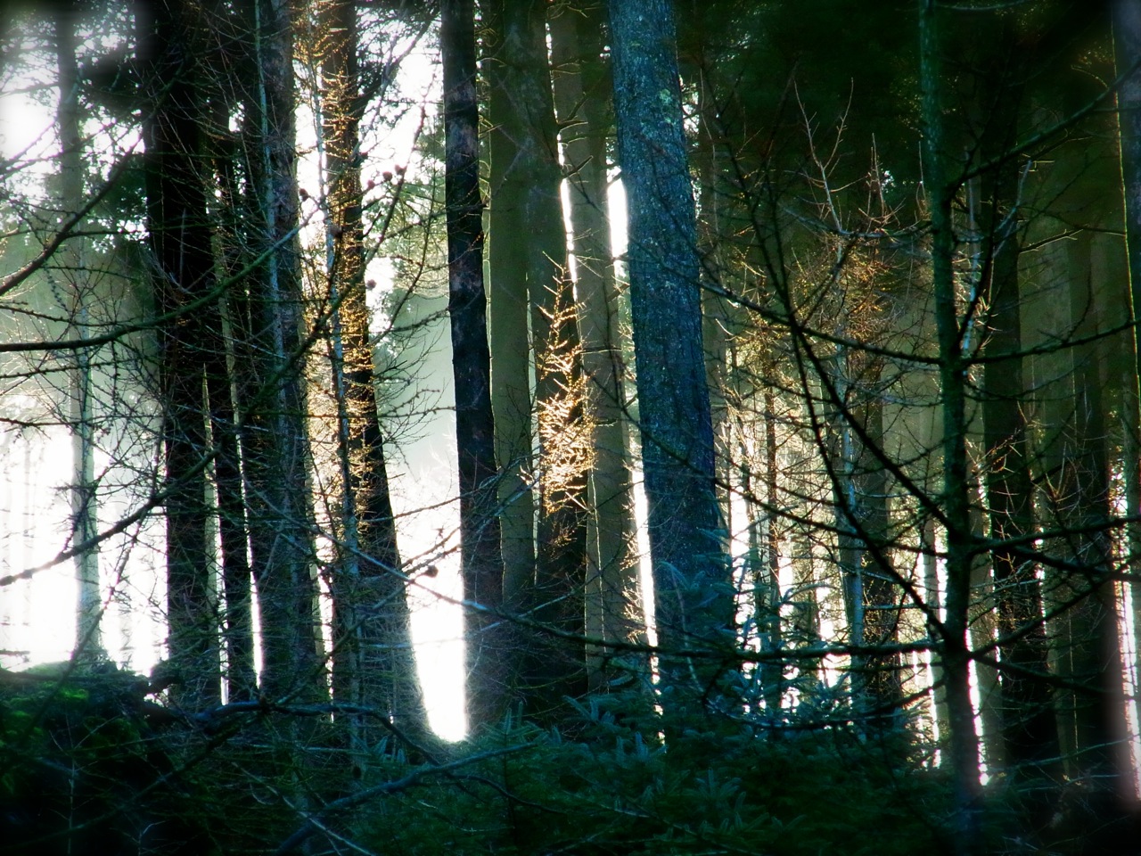 長雨のせいで、しっとり湿気をふくんだ苔が瑞々しくて、静かな森のなかを小さな流れがあちらもこちらも、どんどん流れています。ときどき立ち止まって写真を撮ったりしながら、いつもと同じデリーボーンの丘を登るコースをゆっくり歩きました。