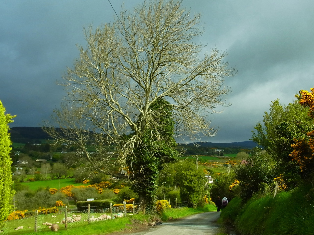 C’était là où j’avais confectionné des ‘scones’ avant de partir (mé-mo-rable!!) … ensuite c’était la marche autour du village de Roundwood, comme on le fait tous les mercredis: des canards qui étaient en visite chez les vaches… des fleurs de printemps, ce jour-là …