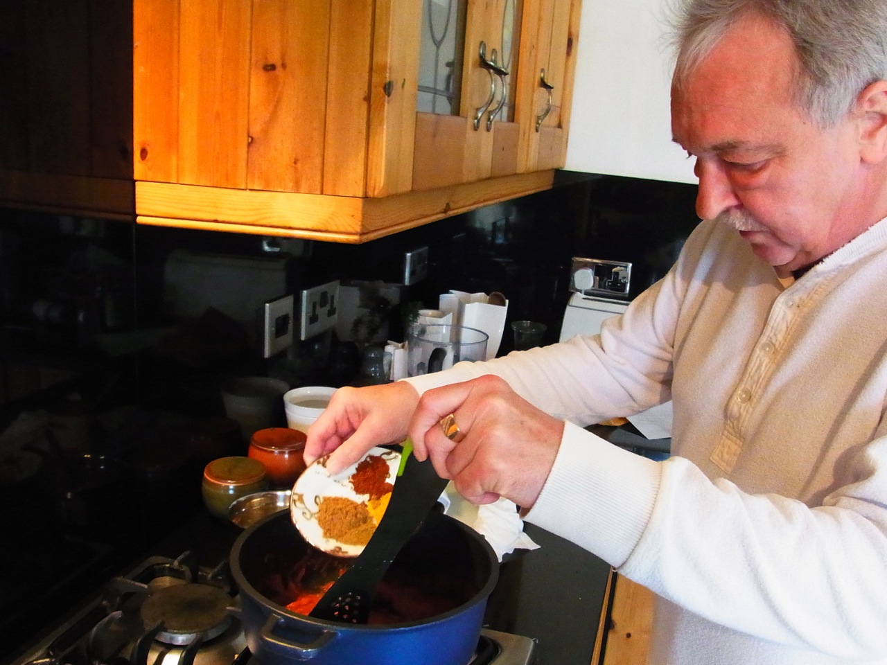 バーニーちゃんがインターネットでレシピを見つけて、スパイスの分量を量ったりも手伝ってくれました。ちょっと体調あまり良くなかったけど、良い気分転換になったみたい。