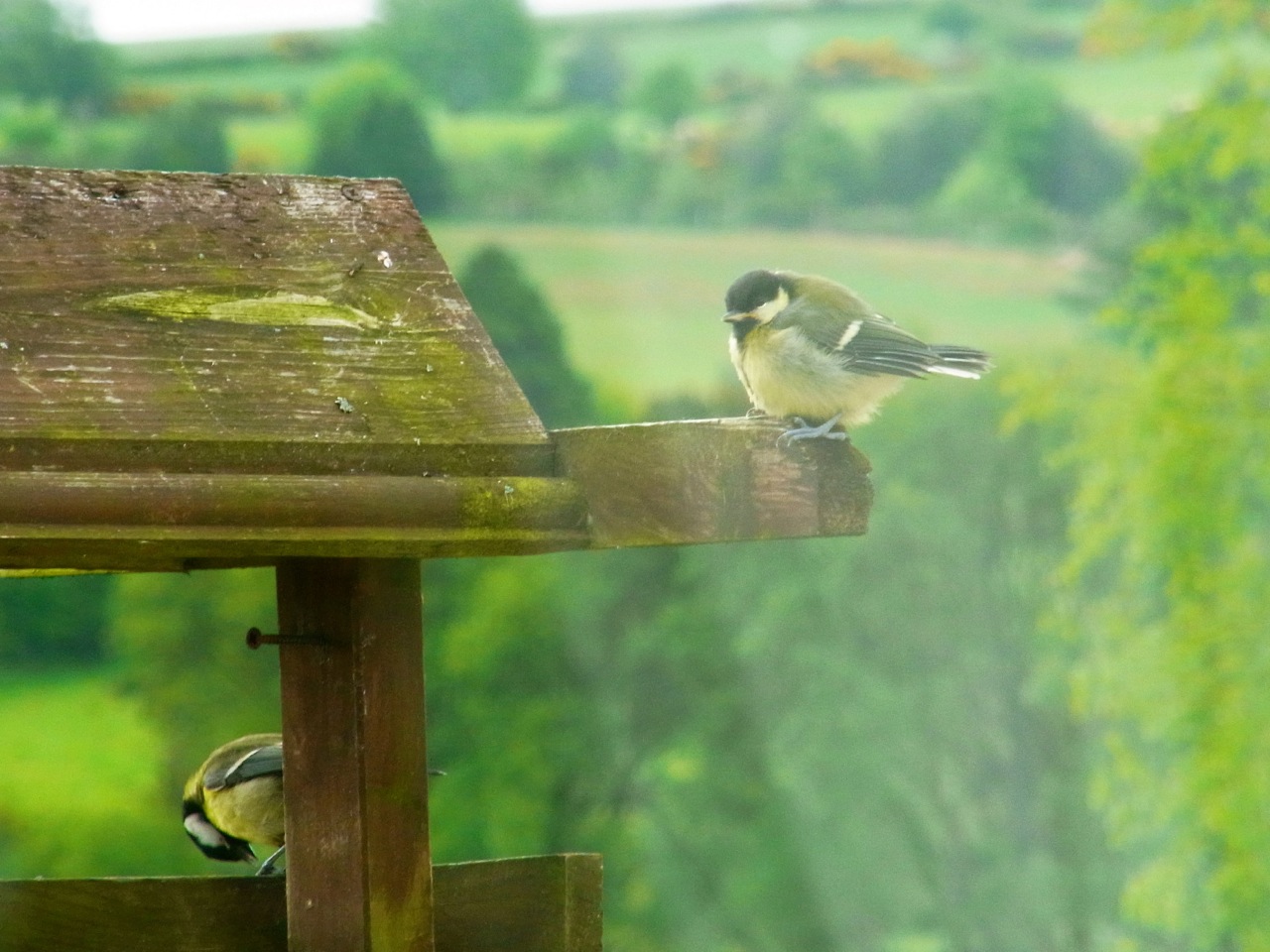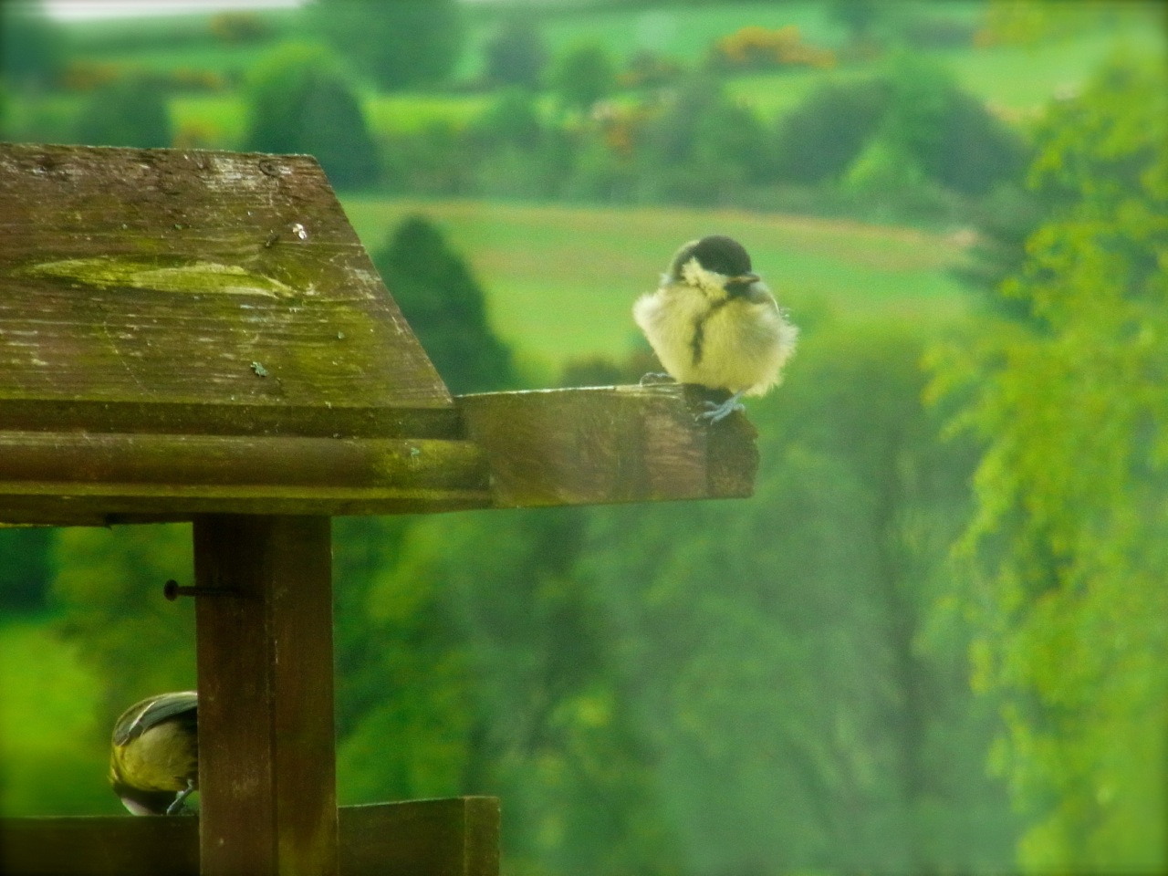 Fluffy cuty small tit baby perched on the corner, waiting for Mom-tit (or Daddy-tit? ) to feed him!