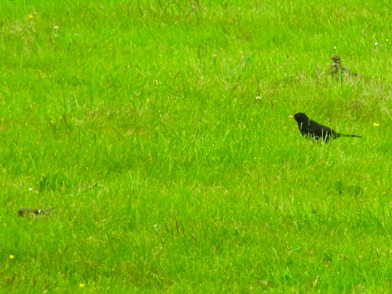Ce matin-là, notre petit ‘zoo’ était plein de différents visiteurs : lapin (bien sûr, comme d’hab), merles, grive musicienne…