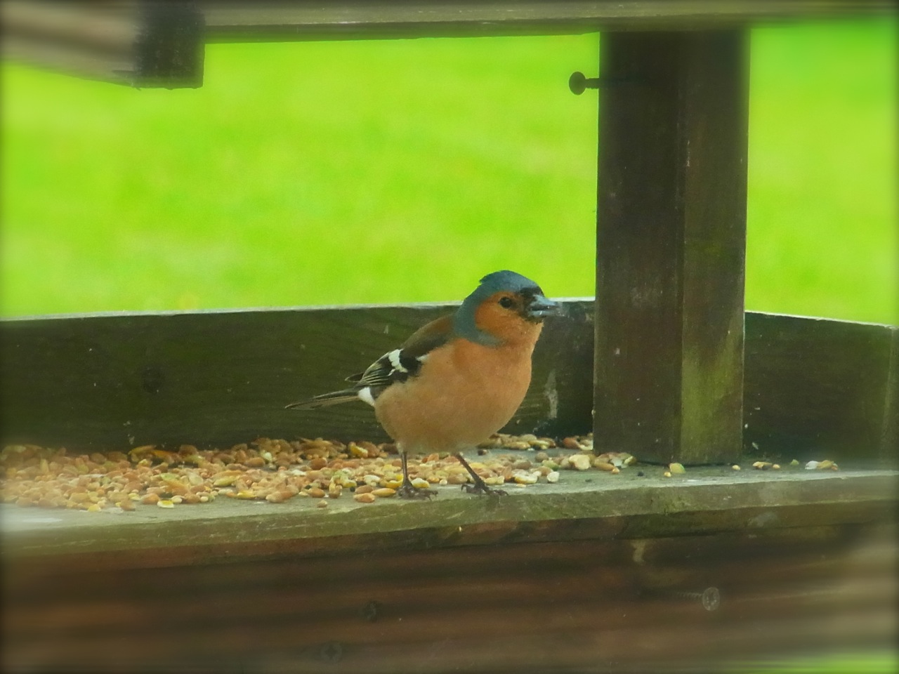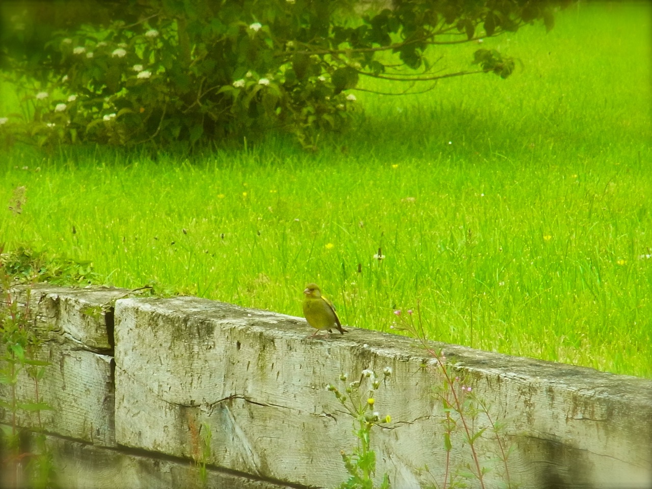 Ses ‘cousins’, pinsons des arbres, sont très présents, mais c’était la première visite du verdier d’Europe ( Green finch.)