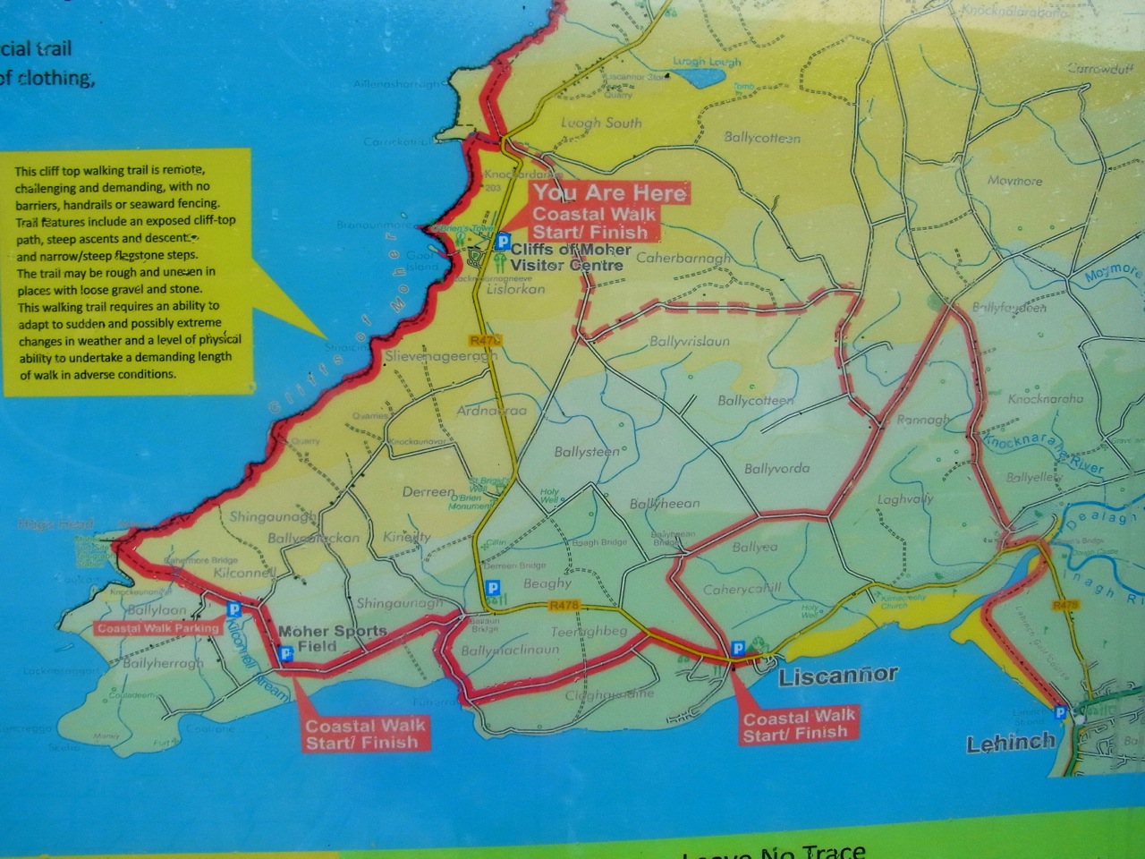 10時ちょっと過ぎから歩き始め、モハーの崖の端からビジターセンターのところまで辿っていきます。ビジターセンターに午後1時ちょっとすぎに到着。