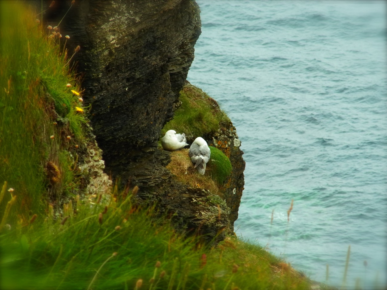 On m’avait dit que peut-être on trouverait des ‘puffins’ ( des ‘macareux’ au bec orange, super mimi!!) … mais comme j’ai peur de m’approcher du bord, je n’ai rien vu de tel…