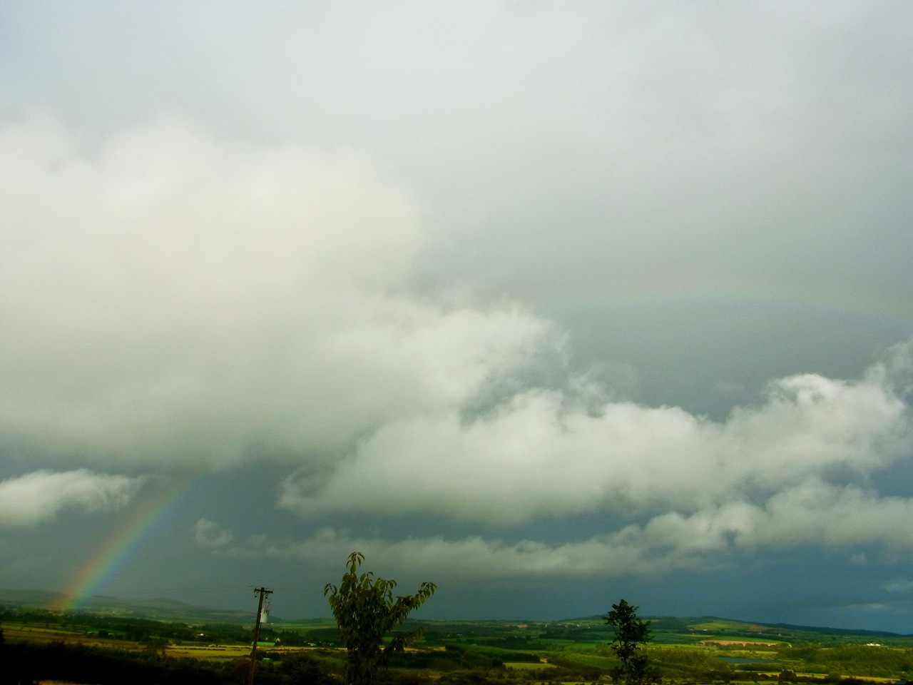 Dans l’après-midi j’étais à ranger dans la nouvelle maison quand on a eu une petite averse, comme on en a souvent ici en cette saison, après quoi j’ai eu droit à cet énorme arc-en-ciel, porte bonheur !!