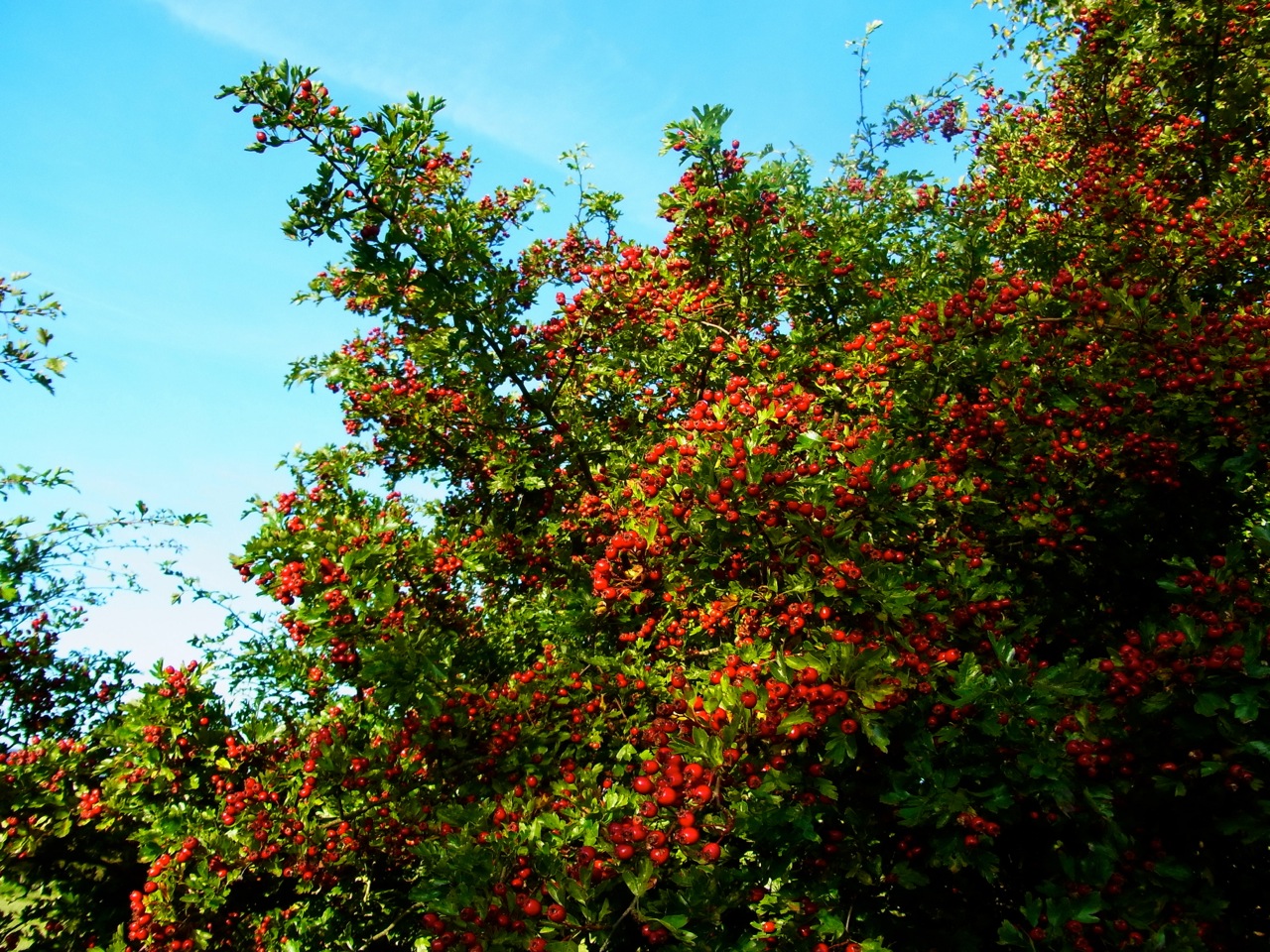 Ceux-là ne sont pas mangeables! サンザシの実も真っ赤に色づいています。