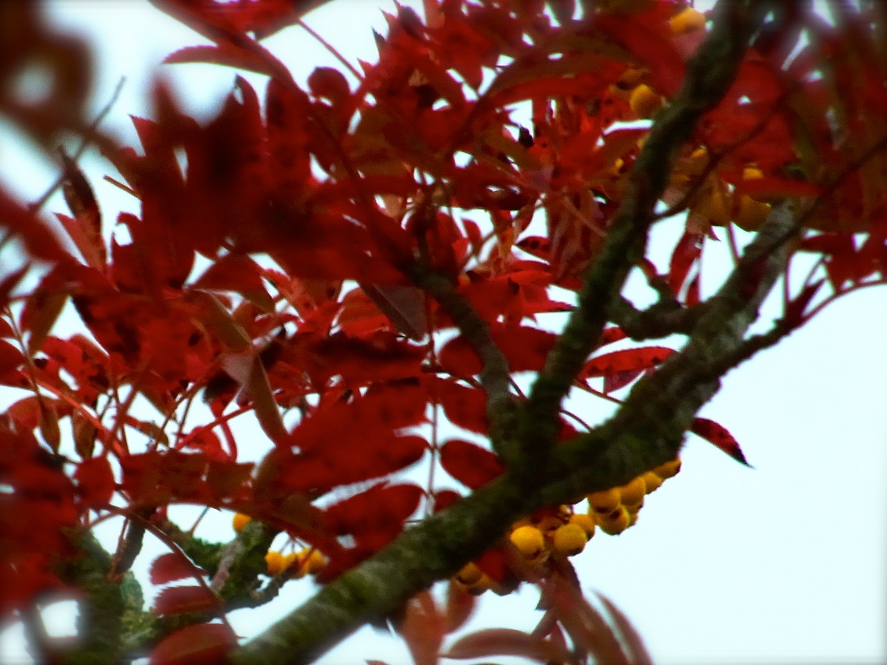 Autumn leaves and fruits are beautiful amazing things. There are lots of different berries, red and yellow colored ones, certainly birdies favorite food !!