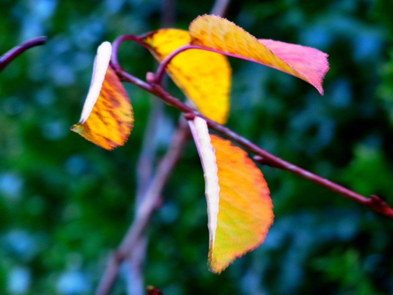 Il y avait à peine assez de lumière pour faire des photos de ces belles feuilles d’automne dans le jardin.
