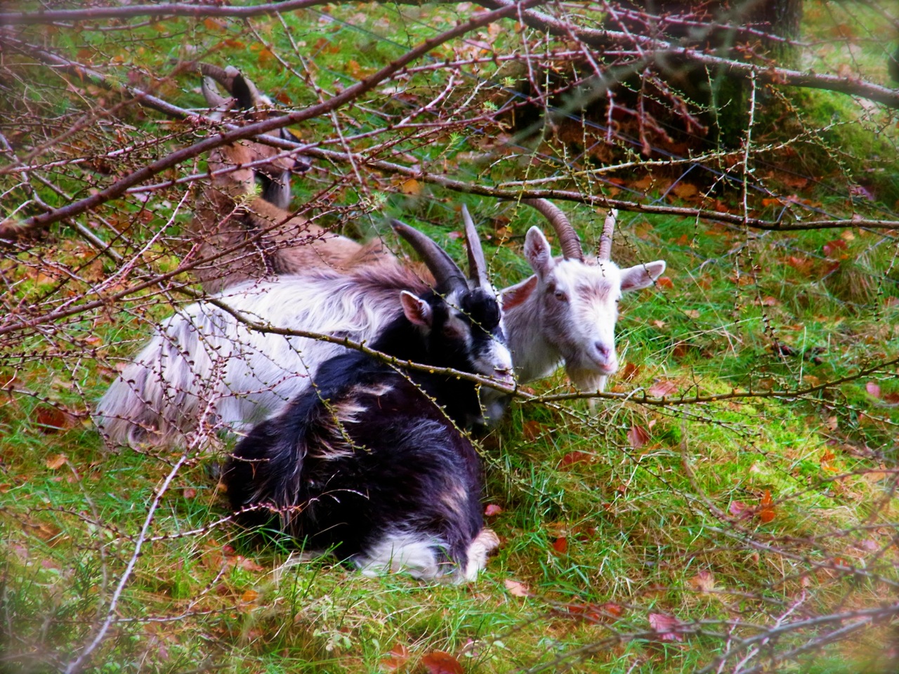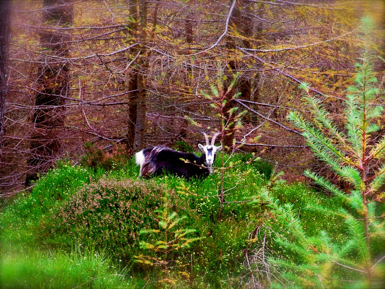 Ensuite quand nous sommes arrivées vers le haut de la colline de Derrybawn (notre trajet habituel), nous sommes tombées sur un très gros troupeau de chèvres sauvages. Ils étaient vraiment très près du chemin, mais ils ne se sauvaient même pas… ils doivent savoir que ces humains sont simplement là pour passer.