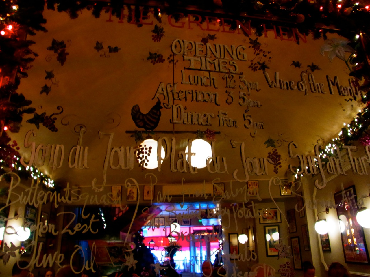 バーニーちゃんがお迎えに来てくれて、いっしょにランチ。レストランでいっしょにご飯を食べるのは久しぶりだったなあ。出かけられたのはよかったけど、バーニーは足がまだ痛くて、あまり歩けないとわかりました。ありゃまー。アジアスーパーでお豆腐など買い込んで帰りました。Bernie est venu me chercher et l’heure de déjeuner! L’ambiance de Noël, déjà, dans le petit restau-bistrot français.