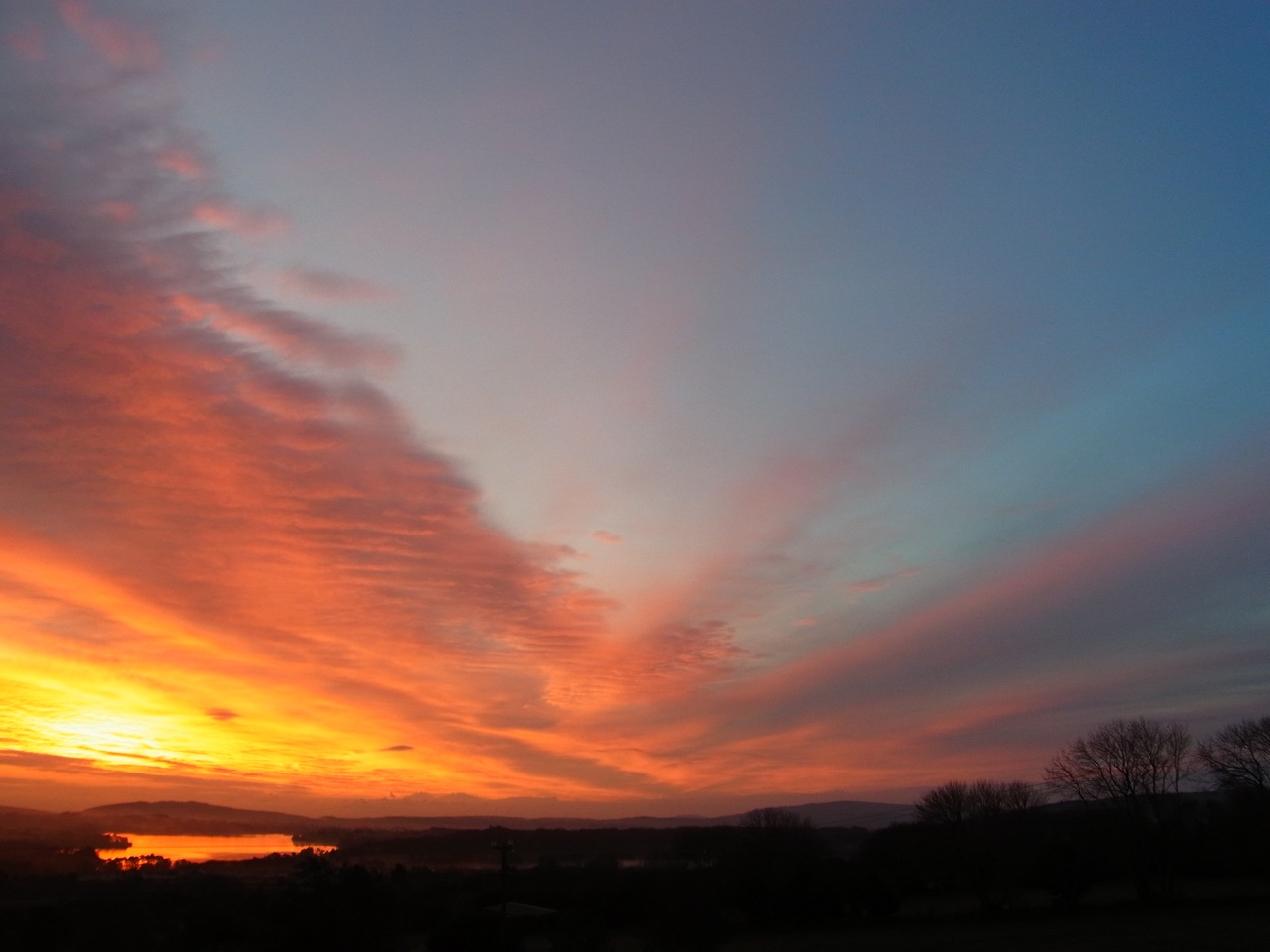 C’est un véritable plaisir de nous lever et voir les couleurs de ciel aux variations infinies. Il y a des jours de pluie au ciel gris monotone, mais en collectionnant ainsi je me rends compte qu’on a eu pas mal de beau temps en novembre. La saison est passée de la fin d’automne vers l’hiver. La photo en tête du billet est le matin du 24 novembre, à 7h35.