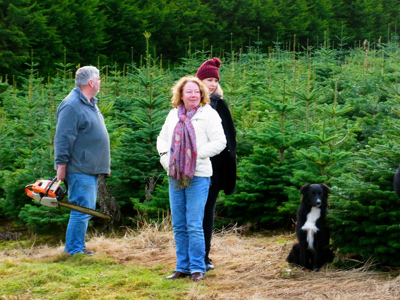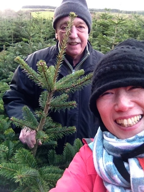 Sat 13 December. David and Siobhan kindly proposed to go together and get the Christmas tree from Enniskerry, the same way we did last year. (For last year’s story, click here.) This is their family tradition to go this way and David uses his father’s electric saw to cut the tree they picked. We were delighted to meet them and have a quick tea in a café in the village before setting off to this ‘tree farm’ yard. Very nice this time Bernie could come together with me !